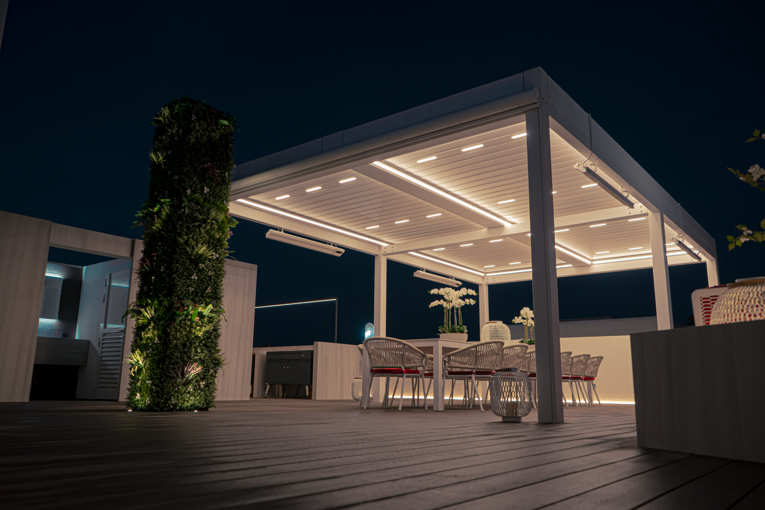 We make a survey at client’s site, we design and propose a suitable Pergola system for their use. We use the most advanced sun shade technology with superior outdoor environment, from the largest manufacturer of shading products from Italy, and China,